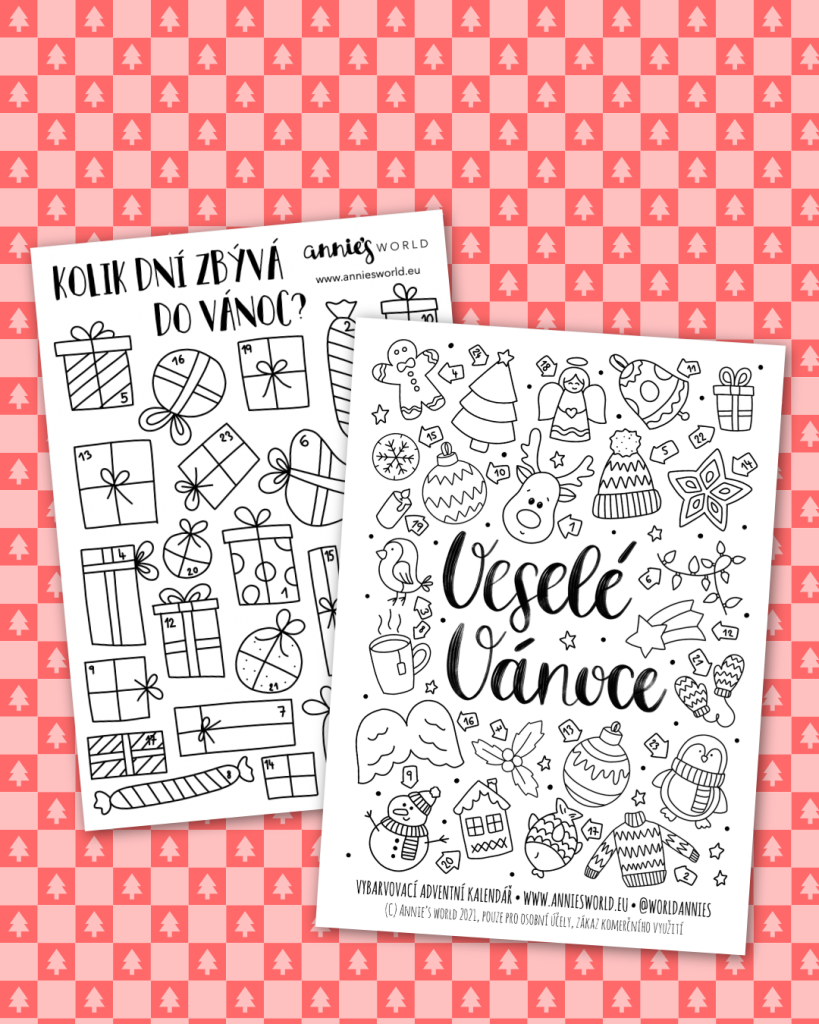 Pro Vánoce v roce 2020 a 2021 jsem vytvořila vybarvovací adventní kalendáře, které stačí stáhnout, vytisknout a odpočítávat s nimi dny do Vánoc.