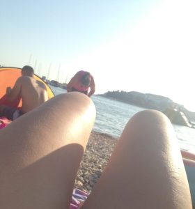 Navečer jsme šli na chvíli do moře, které je ale hrozně studené 🙁 Tak jsem tam byla jen chvíli, a poté jsem se opalovala… Nakonec jsem tam i usnula 😀
